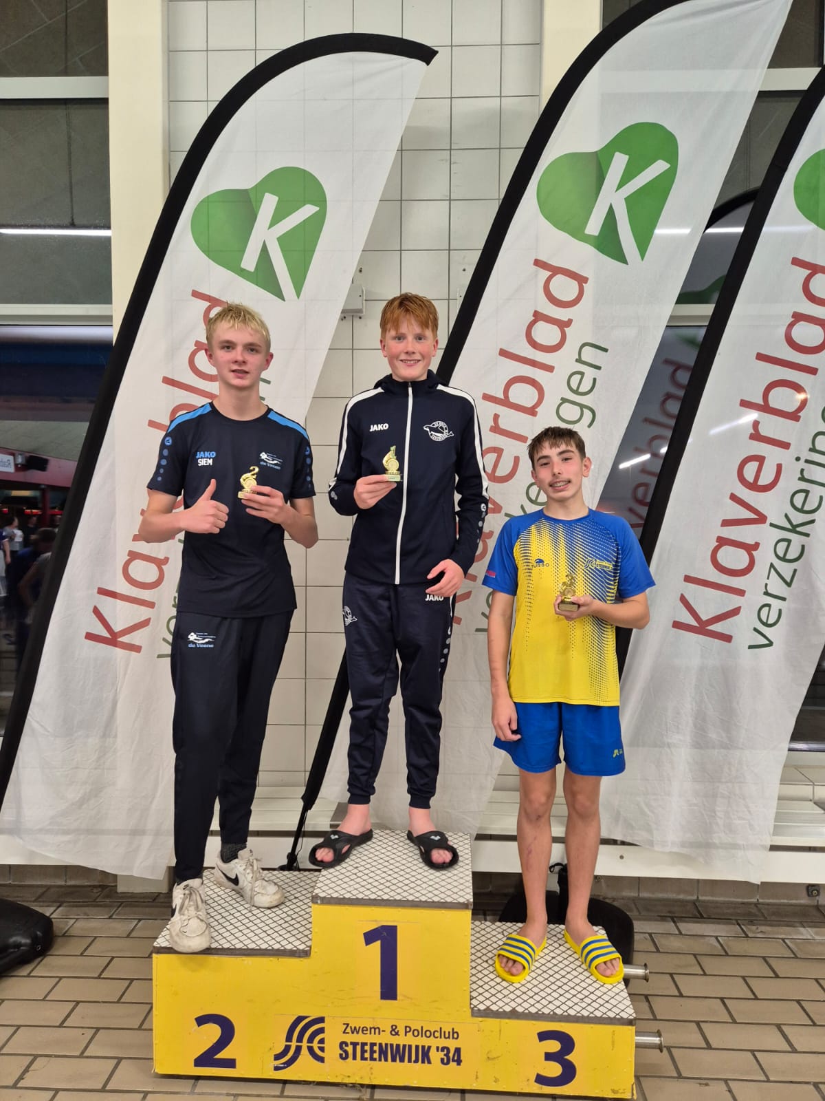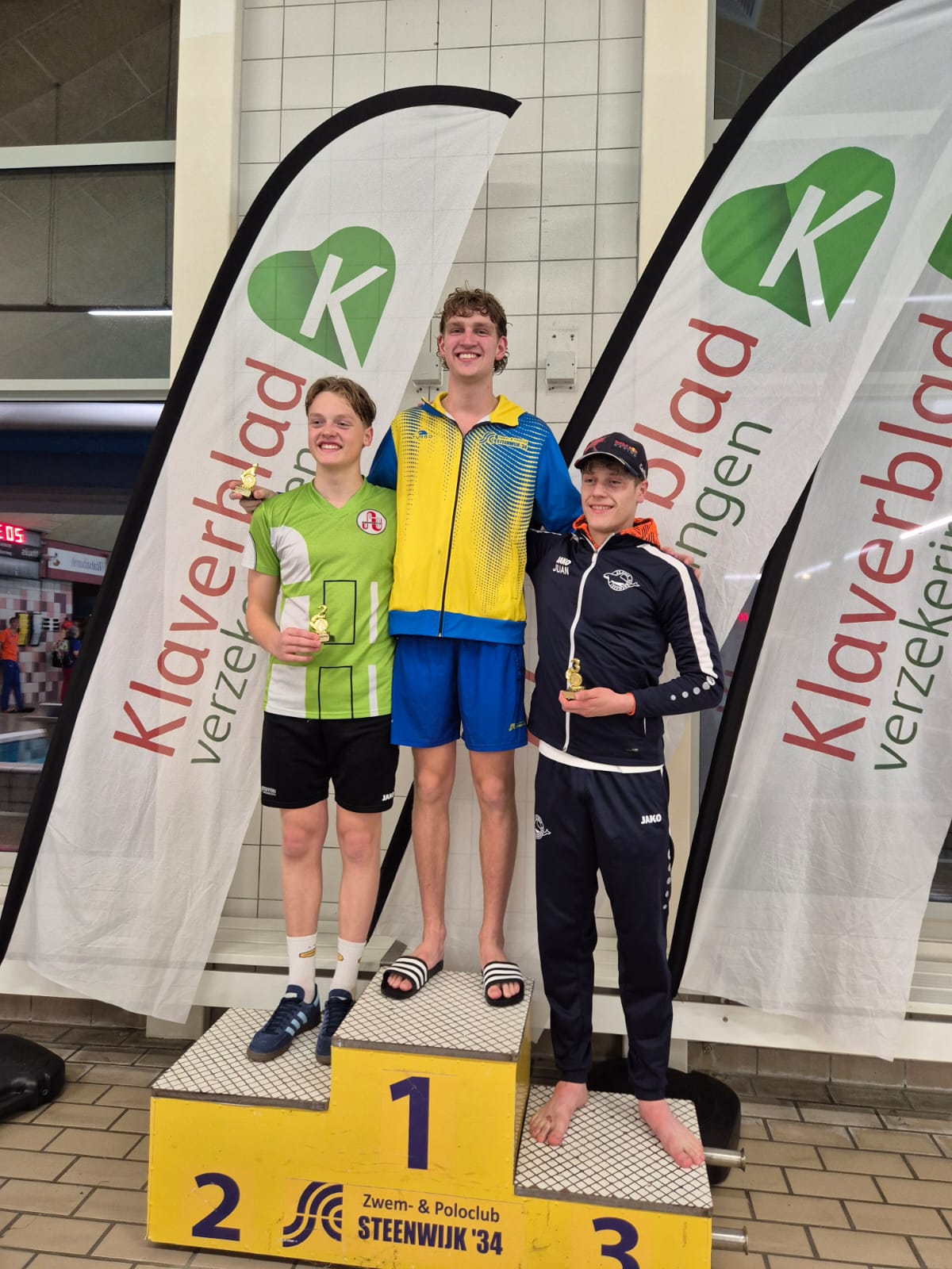 De finales werden natuurlijk vooraf gegaan met de viersprintnummers waar de nodige records door de zwemmers van de thuisploeg verbroken werden. De zaterdagmiddag ging van start met de 50 meter vrijeslag. Hierbij verpulverden Jesper Heijs, Rio Babic, Dyon Scholten en Sven Casper Hageman hun persoonlijke records. De 24.36 van Sven Casper was voor hem de eerste keer onder de 25 seconden, wat een aanscherping van zijn clubrecord bij de 15-jarigen betekende. Jaydey Schonewille zwom eveneens zijn clubrecord uit de boeken door zijn tijd aan te scherpen naar 24.57. Records op de schoolslag werden eveneens verbroken door Rio, Dyon, Sven Casper en Jaydey. Rio en Dyon zwommen met respectievelijk 37.29 en 38.50 voor het eerst onder de 40 seconden. Net zoals op de vrijeslag werden ook op de schoolslag twee clubrecords verbroken. Sven Casper verbeterde zijn eigen record naar 31.40 en Jaydey zwom met 31.23 het 35-jaar oude clubrecord van Wilko Rutgers (31.60) uit de boeken. Tekst gaat verder onder de foto.