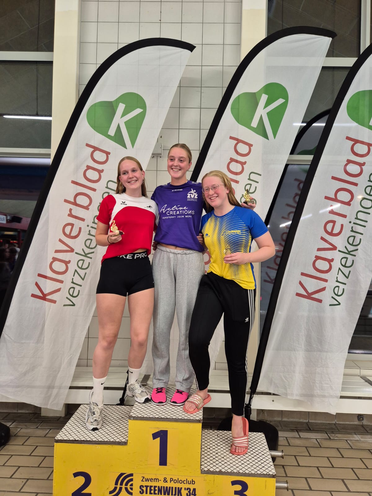 Steenwijk – Met twee zinderende finales kwam de Klaverblad Sprintwedstrijd op spectaculaire wijze ten einde. In een sfeervol opgelicht bad, begeleid door opzwepende muziek en aangemoedigd door een enthousiast publiek, streden twaalf finalisten op de 100 meter wisselslag om de feelbegeerde titels Sprintkoning en Sprintkoningin. Titels die in het verleden al eens gewonnen werden door illustere namen als Inge Dekker, Saskia de Jonge of Ranomi Kromowidjojo. Dit jaar gingen Ismay Lichtendonk (DAC) en Arjan Dekker (Bubble) met de kronen naar huis, na spannende races waarin zij uiteindelijk aan het langste eind trokken. Zwem- en Poloclub Steenwijk ’34 werd in de finales vertegenwoordigd door Jaydey Schonewille en Sven Casper Hageman. Zij eindigden respectievelijk op een knappe tweede en vierde plaats.